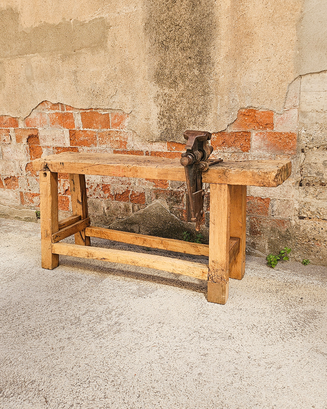 Pequeño banco de carpintero con carácter. Medidas: 168cm x 40cm x 78cm de altura.